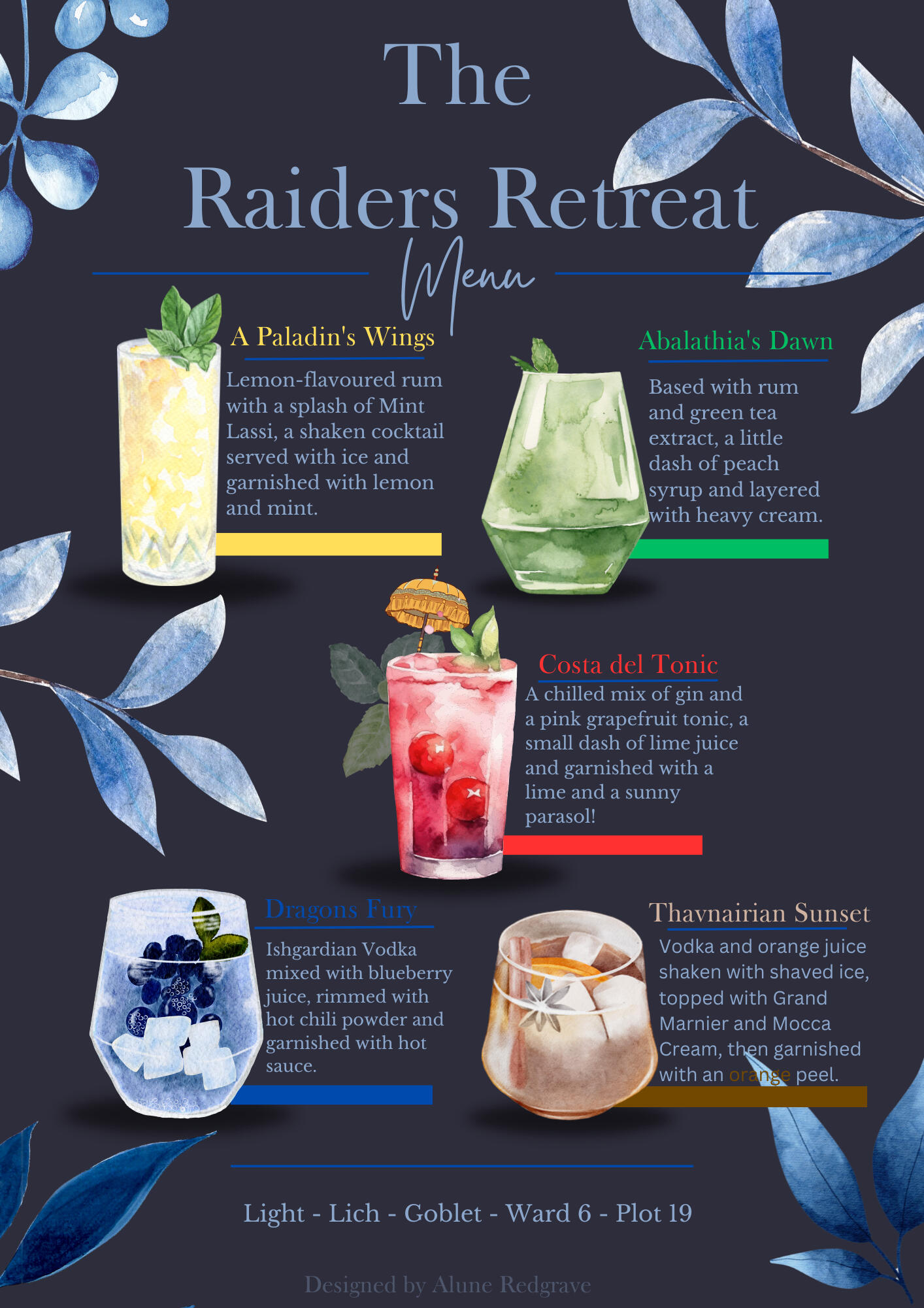 Alune is the bar's mistress, and enjoys being tasked to create innovative and challenging drinks. She is an empathetic and bubbly individual that values her freedom and her friends above all.However friendly she may appear, she holds some things sacred, such as her independence, and her territory. Disrespecting her boundaries was the last thing that many people did in their lives."You misunderstand: my patience is vast and my morality is vertuous. However, there are things I do not compromise on: set one toe behind my bar and you shall lose it."